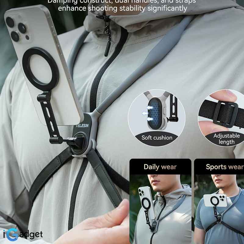 اگر به دنبال ثبت حرفهایترین لحظات زندگی از نگاه خودتان هستید، اینجا نقطه آغاز شماست! هولدر گردنی موبایل تلسین مدل TELESIN MNM 002 با طراحی ارگونومیک و بند تثبیتکننده سینه، هرگونه لرزش را حذف کرده و فیلمهایی با ثبات و...