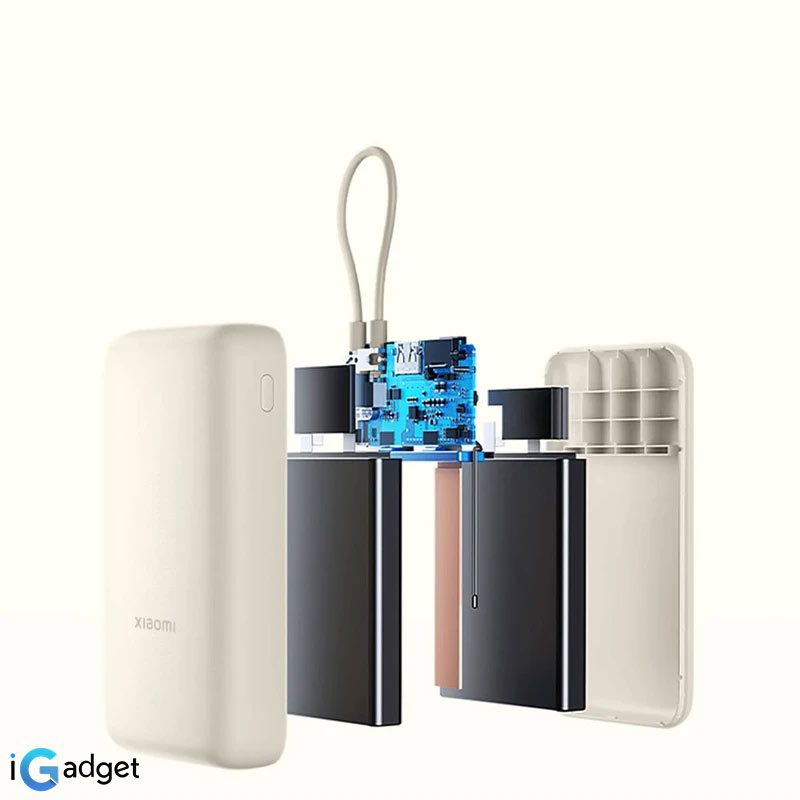 پاوربانک 33 وات شیائومی مدل PB2030MI مجهز به یک درگاه USB-A، یک درگاه USB-C و یک کابل داخلی USB-C است که مزیتی چشمگیر برای کاربران محسوب می شود. این کابل داخلی که به صورت هوشمندانه در بدنه جای گرفته، در مواقع ضروری که کابل همراه ندارید، نجات بخش خواهد بود.